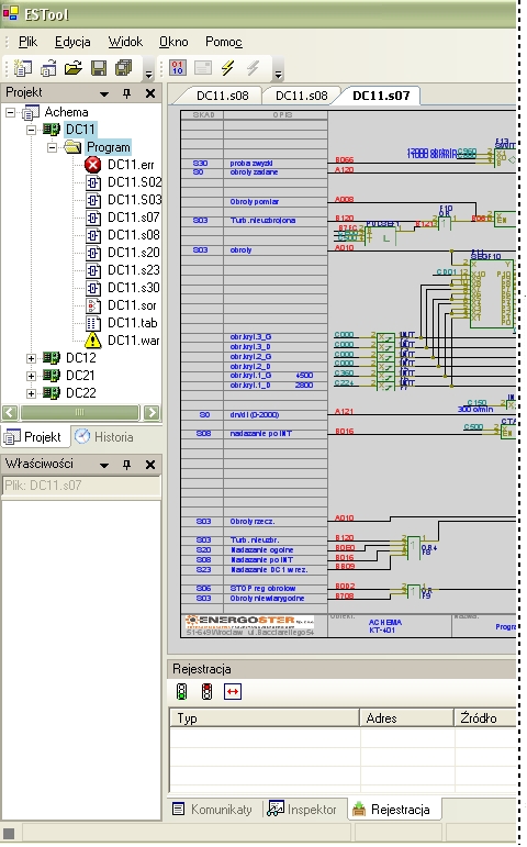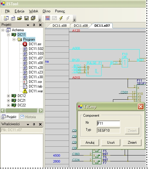 Edytor ESTool umożliwia tworzenie i edycję schematów programowych.